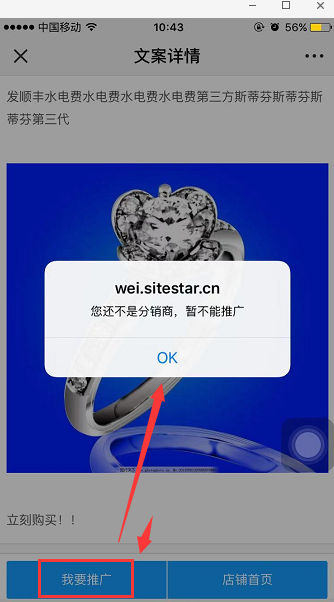 如果还不是分销商时点击我要推广会有以下提示